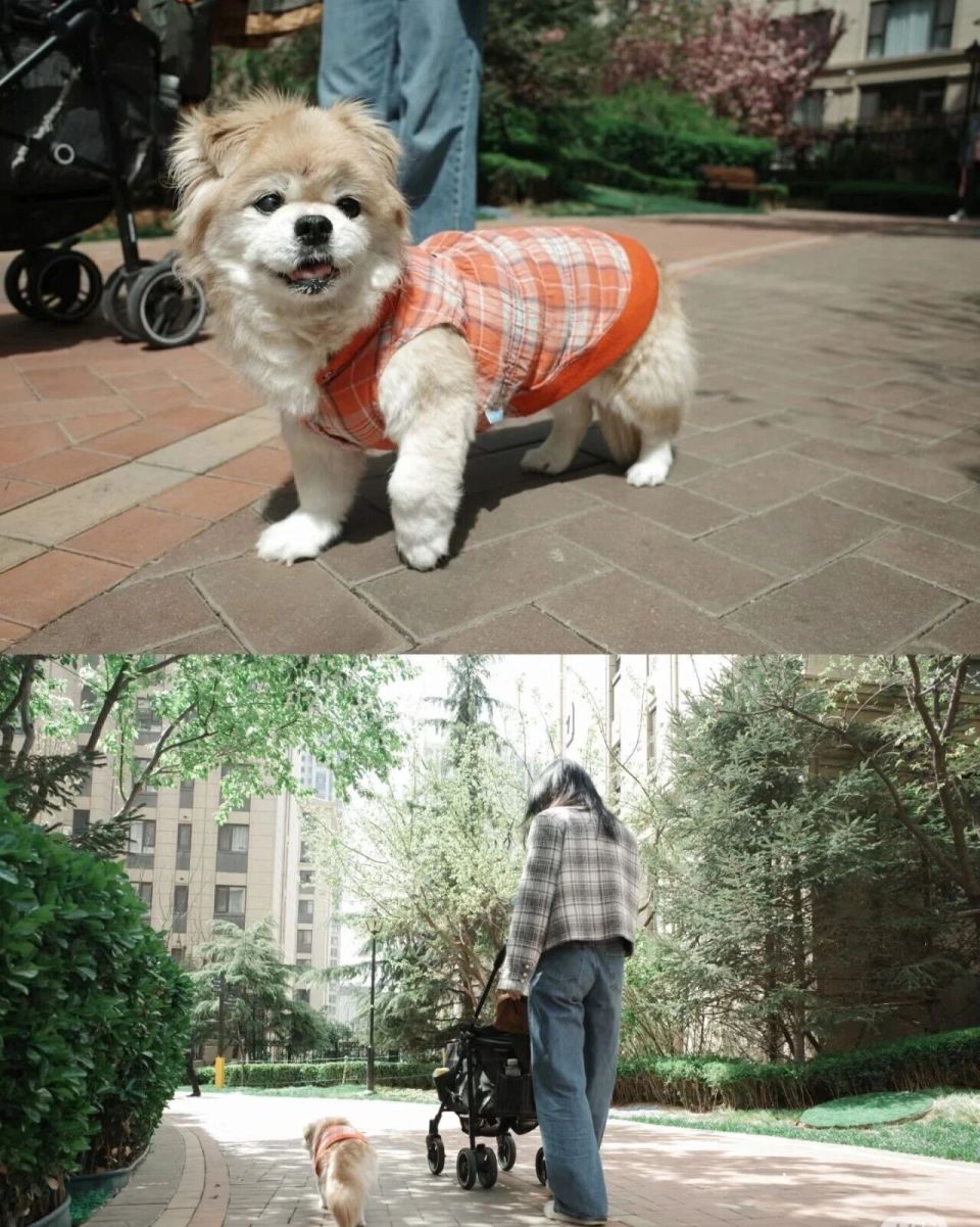 有时她甚至会熬夜赶工,只为腾出时间陪它。她知道,很多老年狗渐渐对外出失去兴趣,甚至不再愿意嗅闻探索,因此她格外珍惜球球仍愿意、并且能够陪伴他们出行的每一刻。