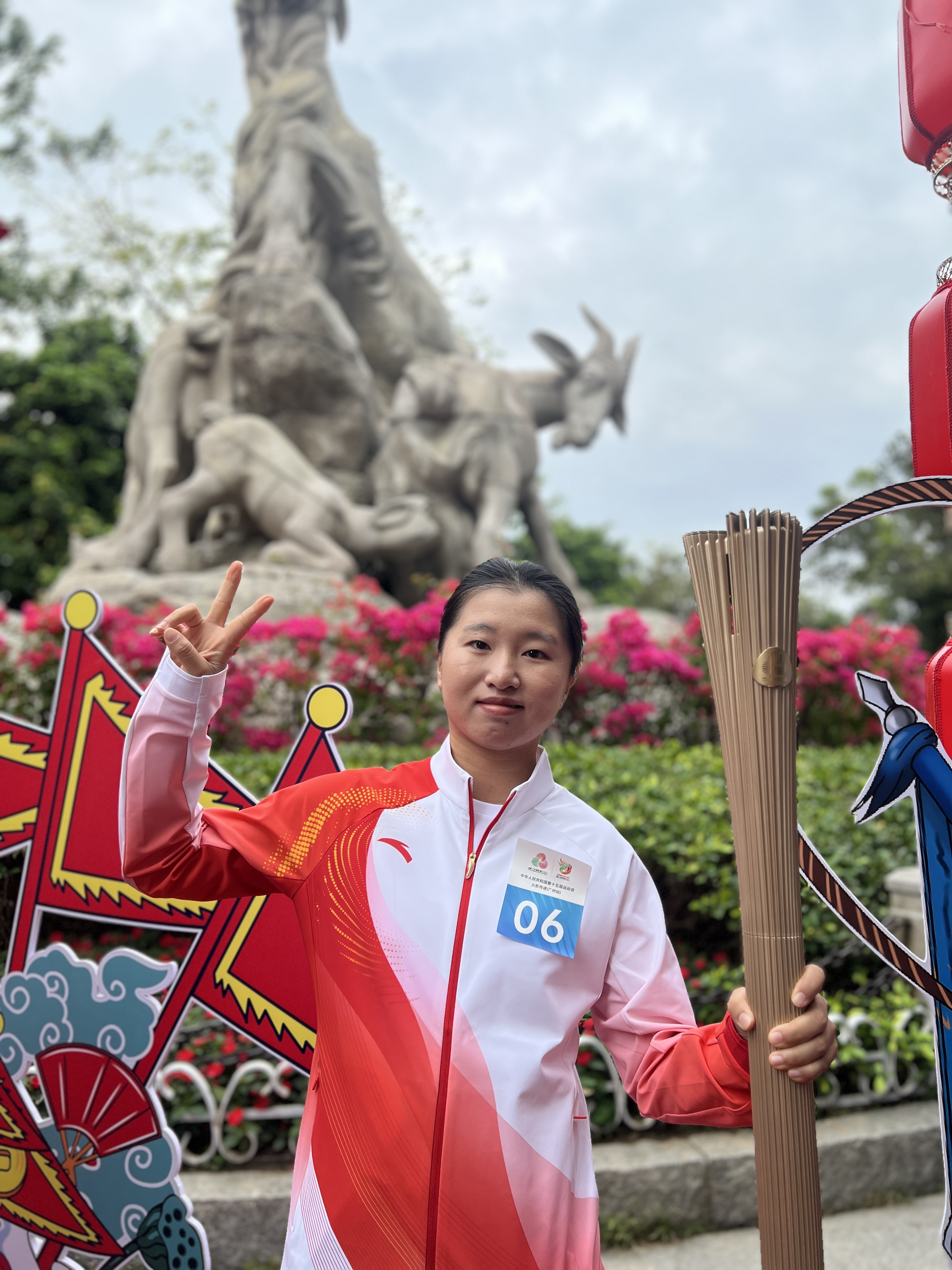 11月2日,广东省滑板队队员曾文蕙在广州越秀公园参与十五运会和残特奥会火炬传递,她是首位代表中国参加奥运会滑板项目比赛并获得前八名的运动员,“能在广东我的家乡担任火炬手很荣幸,也很激动。”