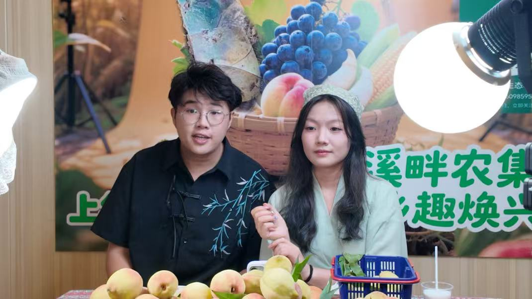 在现场,AI先锋团队依托该校外语学院AI数字人直播基地,整合语言与数字技术优势,连续6天开设助农直播专场,走播集市现场,深度讲解上华镇特色农产品,介绍种植故事与制作工艺,让观众“云逛集市”,实现线上线下联动推广。团队指导教师和学生成员分工合作,通过直播讲解、短视频制作、互动答疑等环节,在抖音平台为上华镇农产品“打call”,进一步拓宽农产品销售渠道,提升品牌影响力。