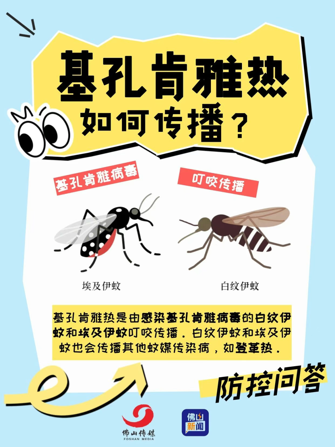 基孔肯雅热是由感染基孔肯雅病毒的白纹伊蚊和埃及伊蚊叮咬传播。白纹伊蚊和埃及伊蚊也会传播其他蚊媒传染病,如登革热。