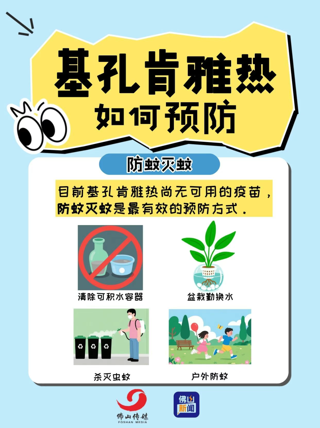 目前基孔肯雅热尚无可用的疫苗,与登革热等蚊媒传染病预防相似,防蚊灭蚊是最有效的预防方式。